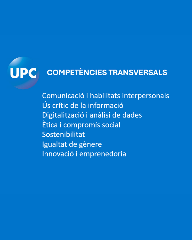 La misión de la UPC es contribuir a la construcción de un mundo sostenible y justo, mediante la investigación, la transferencia de tecnología, la difusión del conocimiento y la formación de profesionales con espíritu crítico y capacitado para trabajar en equipos interdisciplinares y multiculturales, adaptarse a los cambios y aprender a lo largo de la vida.